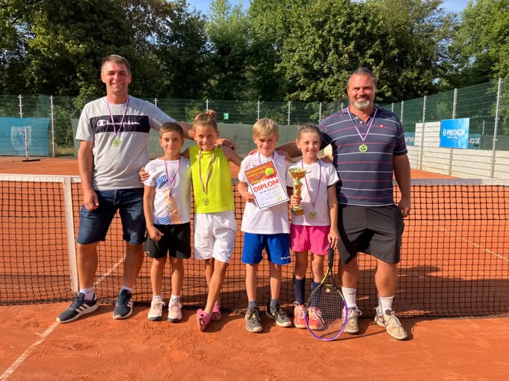 V sobotu 31.8. se v Přerově odehrálo finálové kolo o postup na Mistrovství ČR družstev v babytenise. Náš tým ve složení Martin Novák, David Poloch, Matěj Janák a Terezie Lušovská se umístil na konečném 1.místě a postupuje na MČR. Všem obrovská gratulace
